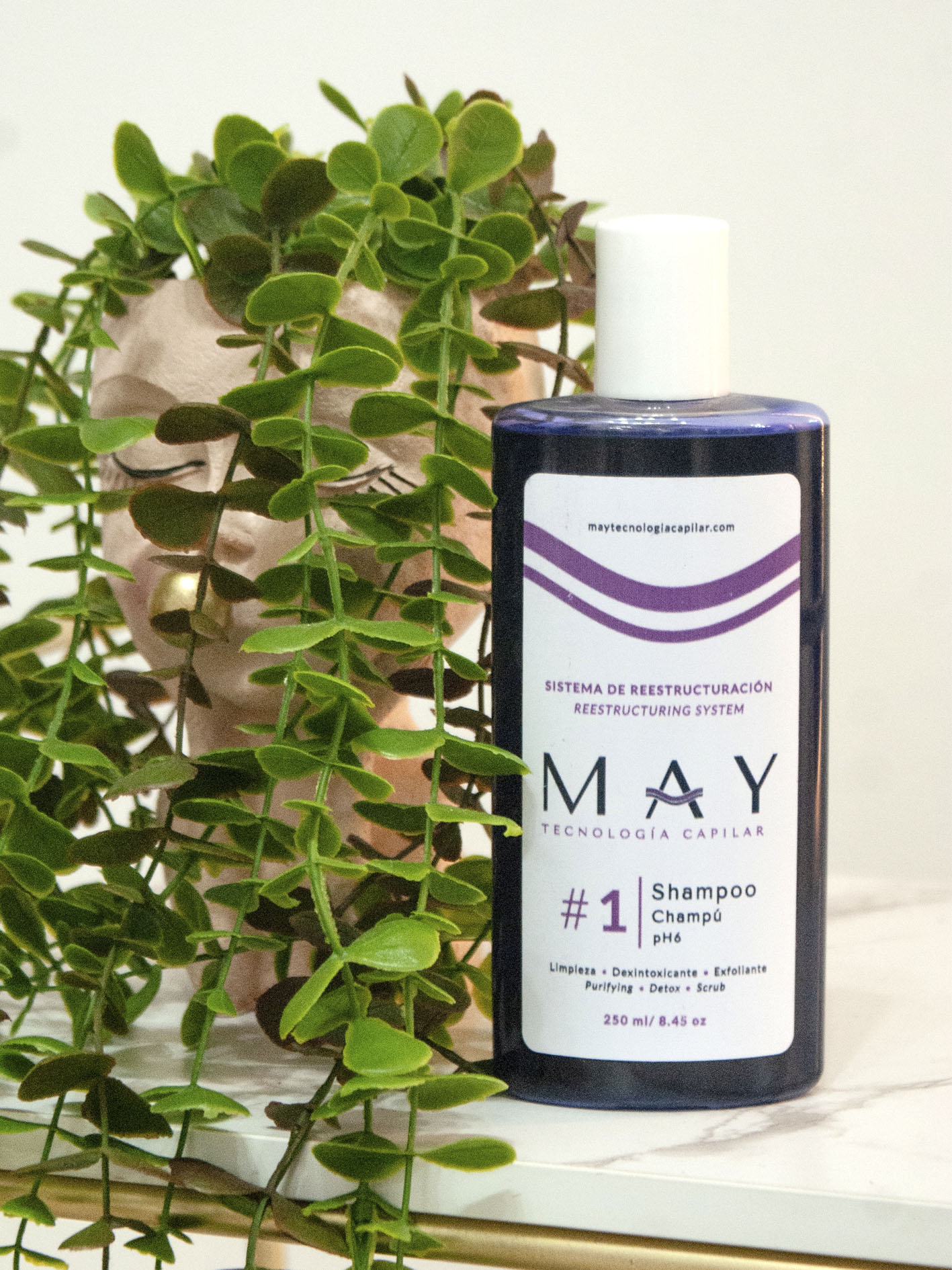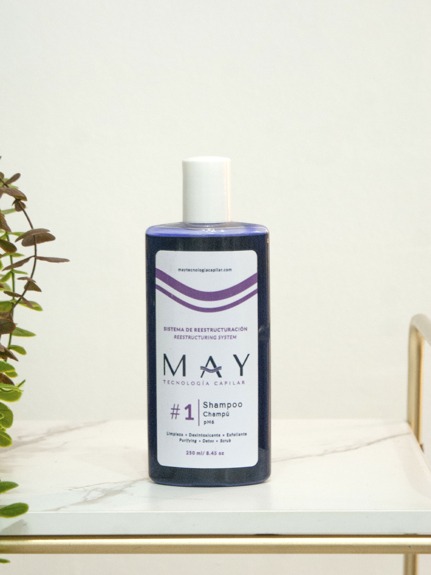 Aplicar sobre el cabello húmedo, masajear hasta formar espuma y enjuagar con abundante agua. Repetir si es necesario. Ideal usar antes de los tratamientos #2 (Fluido) y #3 (Crema de Proteína) de MAY Tecnología Capilar.